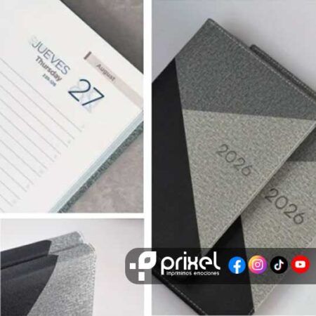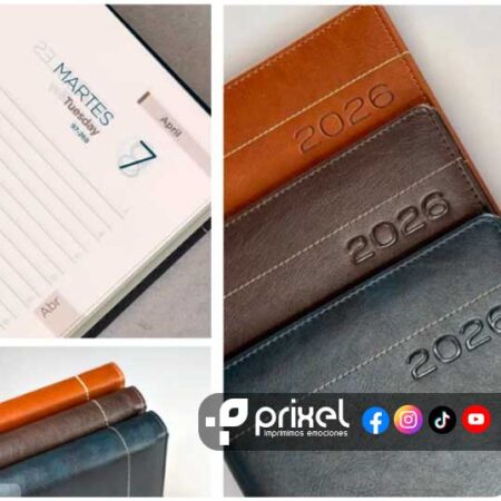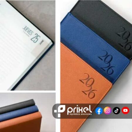 1- Tipo Material: Contamos con agendas con encuadernación clásica, premium élite, que aportan un diseño elegante y compacto. Alternativamente, las agendas curpiel o curpiel italiano ofrecen mayor flexibilidad, facilitando la escritura en cualquier parte de la página y permitiendo una apertura plana para mayor comodidad.