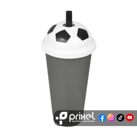 Descripción: Vaso de plástico de una sola pared. Incluye tapa con diseño de balón, ideal para eventos deportivos. Capacidad 27 oz. Base de 6.4 cm de diámetro. Incluye popote de plástico.