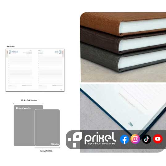 Curpiel ItalianoDescripción: Agenda Clásica Rizzo Presidente y Diaria Personalizada 2026 con logo, texto o nombre en Grabado láser personalizado, impresión Uv Full color, Termo grabado, Serigrafia a un color. Agendas Corporativa publicitaria, promocionales únicas y funcionales 2026 Guatemala.