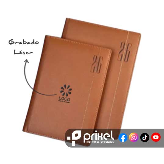 Agenda Élite Lazzio Presidente y Diaria Personalizada 2026 con logo, texto o nombre en Grabado láser personalizado, impresión Uv Full color, Termo grabado, Serigrafia a un color. Agendas Corporativa publicitaria, promocionales únicas y funcionales 2026 Guatemala.
