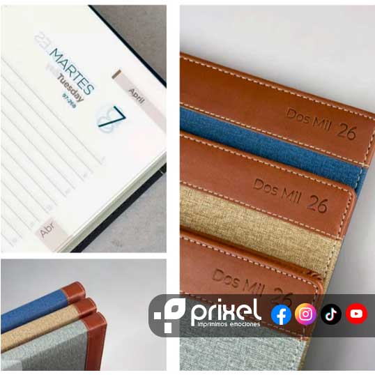 Agenda Élite Valentino Presidente y Diaria Personalizada 2026 con logo, texto o nombre en Grabado láser personalizado, impresión Uv Full color, Termo grabado, Serigrafia a un color. Agendas Corporativa publicitaria, promocionales únicas y funcionales 2026 Guatemala.
