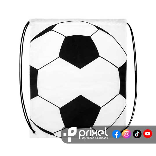 Descripción: Bolsa-mochila con diseño de balón de futbol.