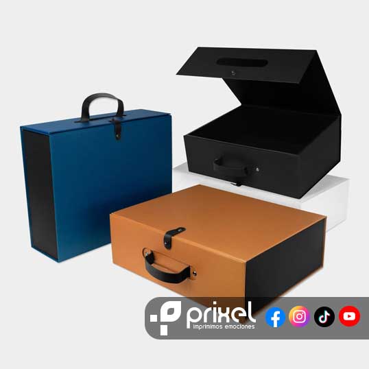 Descripción: Caja grande para sets de regalo. Material rígido y fácil armado. Ideal para crear tus propias combinaciones de sets. Cuenta con asa de mano y broche metálico de presión para un cierre seguro. Además, incorpora una solapa imantada para mayor protección de los componentes.