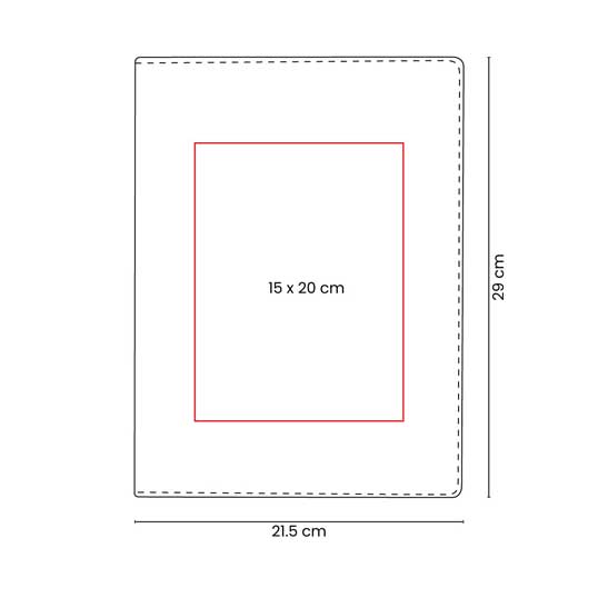 Área: 1.3 x 2.5 cm Llavero / 0.7 x 3.2 cm Bolígrafo / 5 x 0.7 cm Tarjetero