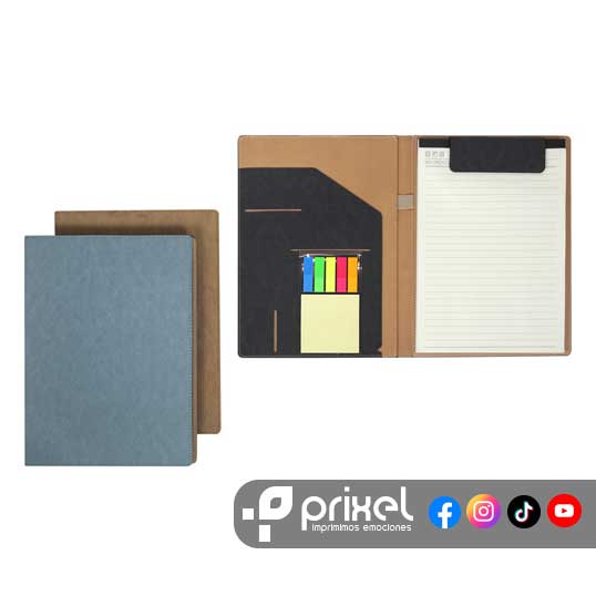 Carpeta con block de notas. Incluye 40 hojas con línea a raya para facilitar la escritura ordenada y elástico para bolígrafo. Solapa imantada interna, que permite reemplazar fácilmente el block cuando sea necesario. Incluye notas y banderines adhesivos.