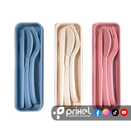 Set de cubiertos portátil material eco-friendly. Contiene cuchara, tenedor, cuchillo y estuche de almacenamiento. Liviano y fácil de transportar. Adecuado para lonchera escolar, almuerzo de trabajo, viajes etc.