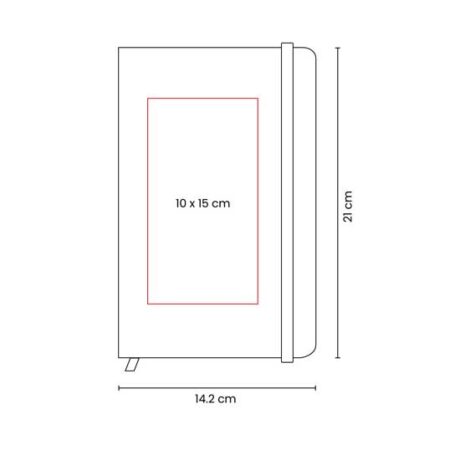Área: 4.5 x 12 cm Libreta / 0.7 x 4 cm Bolígrafo