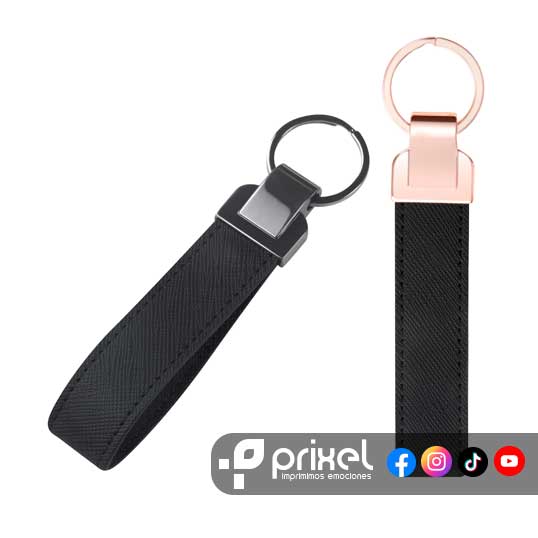 Descripción: Llavero con un diseño elegante y moderno. Combina el material de curpiel con el aro de metal en terminado brillante. Incluye caja individual.