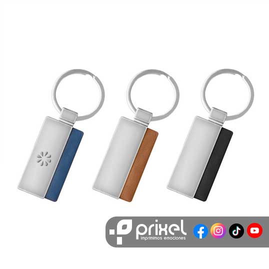 Llavero metálico combinado con curpiel. El contraste de materiales agrega un estilo sofisticado, minimalista y elegante. Incluye caja individual.