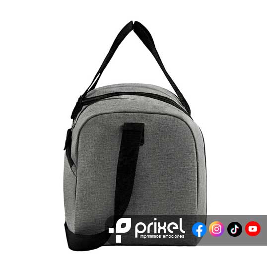 Descripción: Maleta deportiva. Compartimento principal con cierre y un bolsillo adicional en la parte frontal. Además, cuenta con un compartimento lateral para calzado. Incluye correa ajustable para hombro y asas de agarre superior.