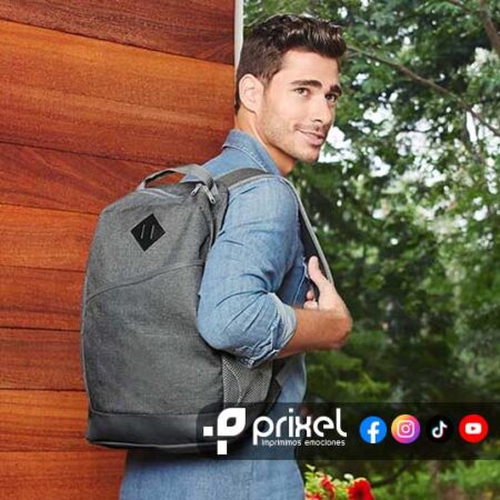 Descripción: Mochila ecológica de algodón reciclado, el balance perfecto entre sustentabilidad y funcionalidad que la hacen tu compañera perfecta para tu día a día. Equipada con un compartimento acolchado para laptop en el bolsillo principal, un bolsillo frontal con cierre, un practico bolsillo superior para objetos pequeños y dos bolsillos laterales para una organización impecable. Además, su banda en la parte trasera te permite adaptarla fácilmente a tu trolley.