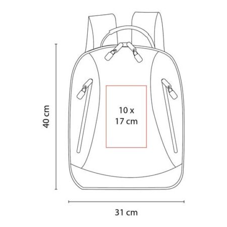 Bolsa principal y bolsa frontal con cierre, organizador de documentos y gancho para llaves, aditamento especial para audífonos, bolsas laterales de red, tirantes acolchados y ajustables. Espalda acojinada. Cuenta con asa de agarre superior acojinada.