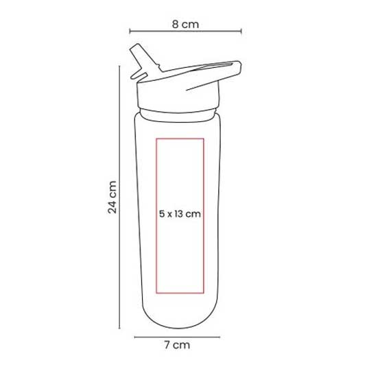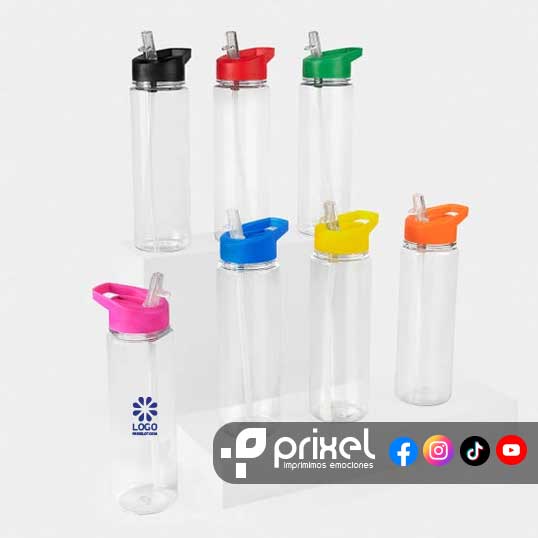 PlásticoDescripción: Pared sencilla de plástico. Sistema de rosca que permite abrir y cerrar la tapa. Incluye asa con un agarre cómodo y suave al tacto, una boquilla abatible para hidratarse y un popote desmontable para facilitar la limpieza.