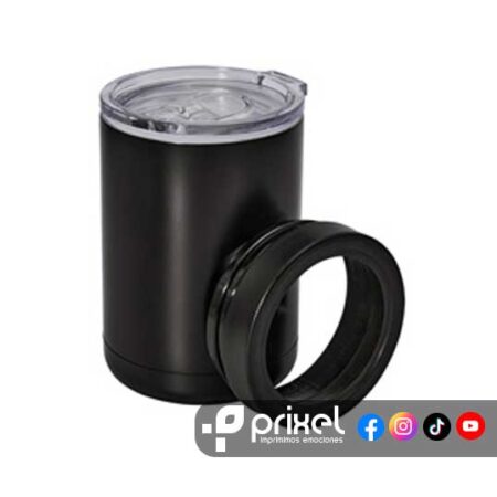 Cilindro de vidrio con manga de silicón graduada en ml. Tapa de plástico con sistema de rosca y asa. Vidrio resistente a bebidas calientes y frías. Incluye caja individual.