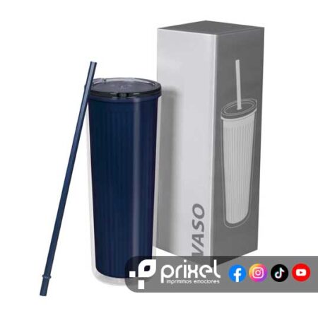 Doble pared. Pared interna plástico, pared externa acero inoxidable. Tapa de plástico con válvula de seguridad. Incluye caja individual.