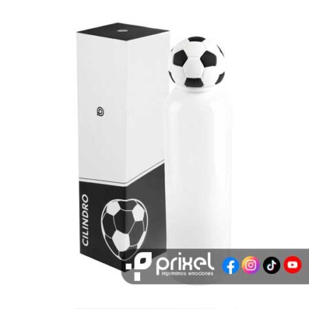 Descripción: Cilindro metálico de una pared. Tapa con cierre de rosca y boquilla de plástico. Como detalle distintivo, cuenta con un balón de silicón decorativo en la tapa. Incluye caja individual.